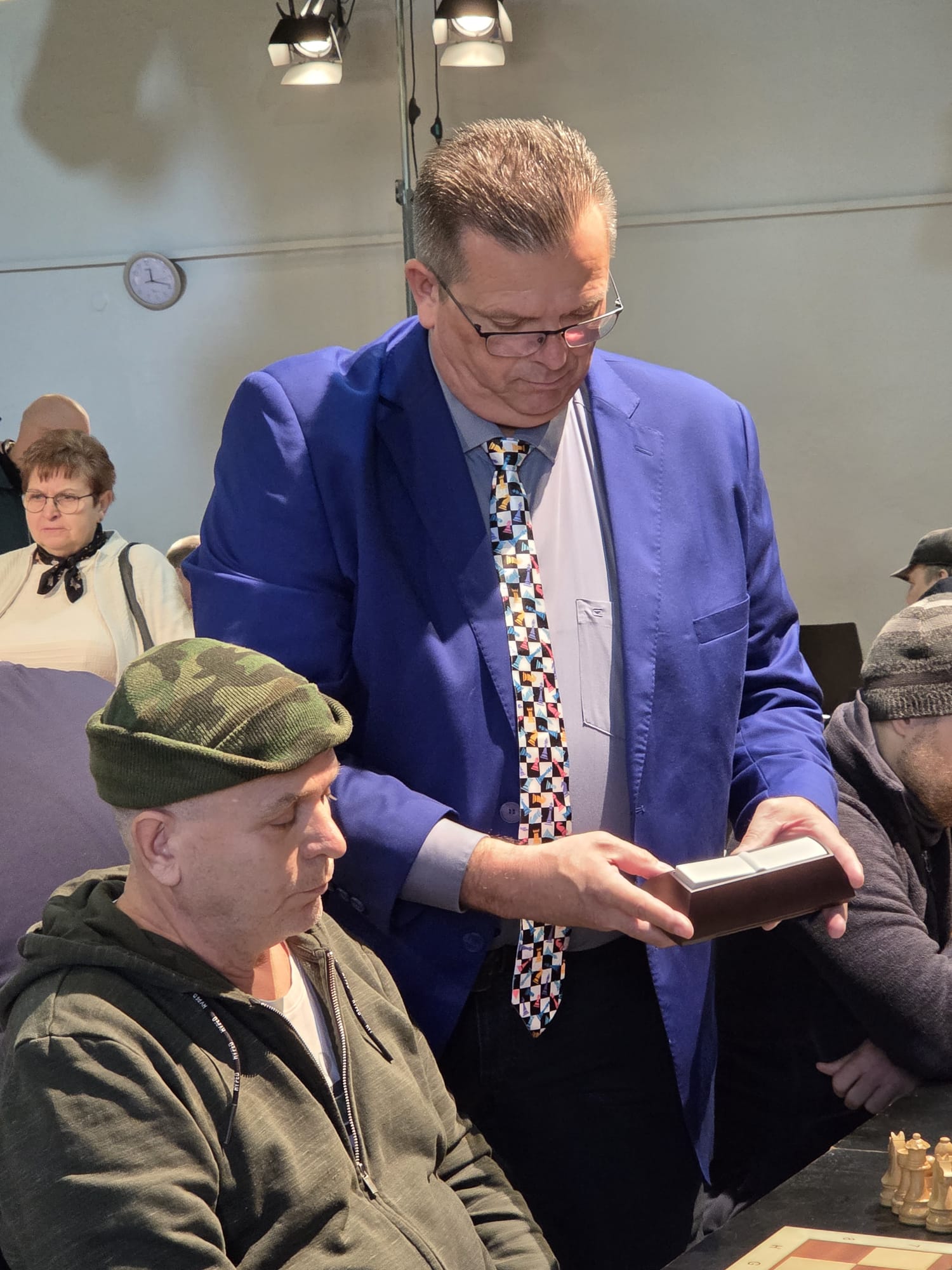 Wir haben wieder mal alle zusammen einen Ehrenamtler geehrt, der viel für die Jugendarbeit und die Pflege des Schachsports getan hat.