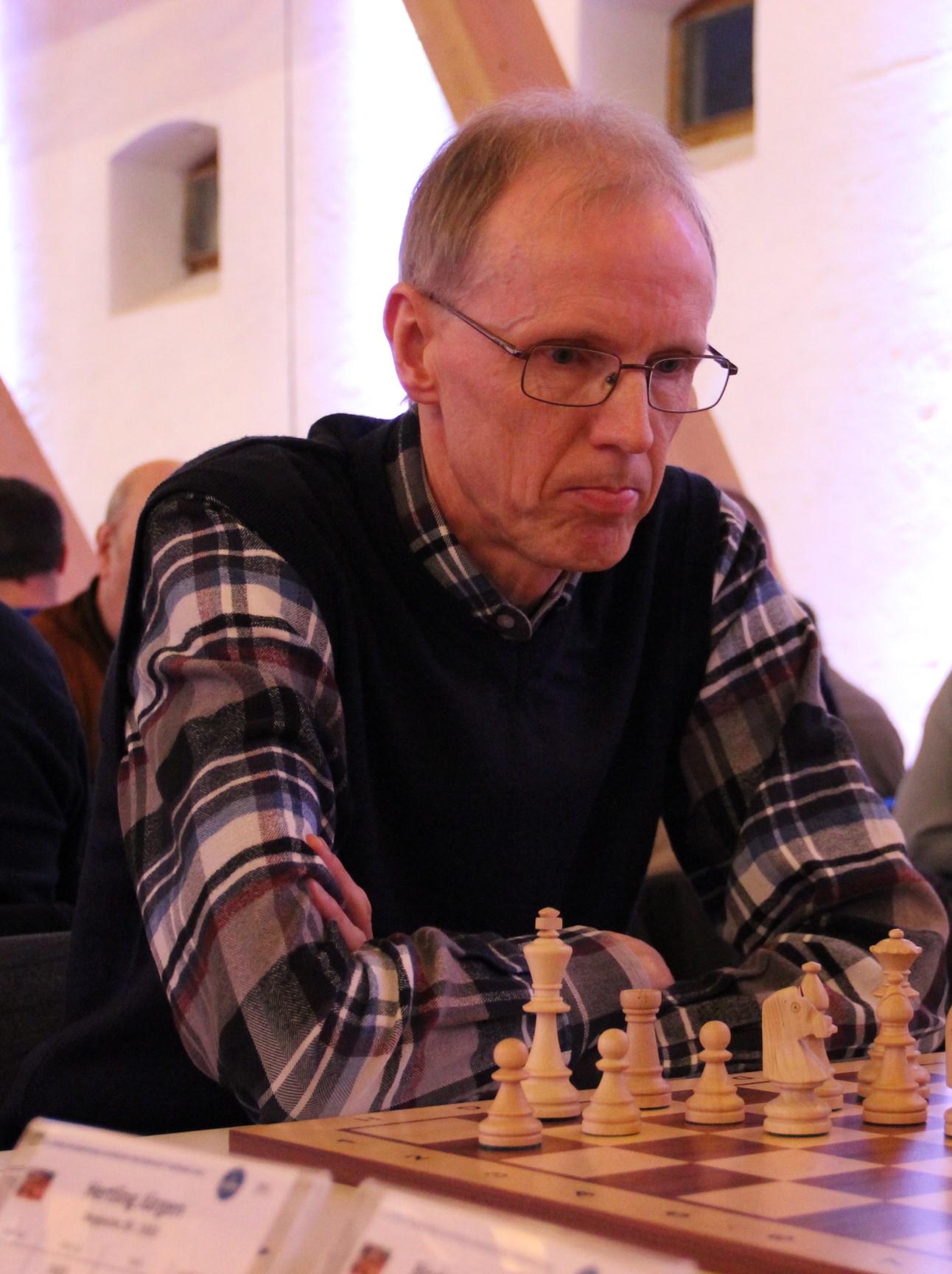 Als nächstes gewann Harald Mendel seine Partie erfreulicherweise. Leider gab es wenig später noch eine Niederlage, sodass ein Stand von 2:4 erreicht war. Die beiden letzten noch laufenden Partien sahen sehr nach Remis aus. Und so kam es auch, obwohl es noch eine ganze Stunde dauerte, bis die letzte Partie friedlich beendet wurde. 3:5 ist natürlich kein Beinbruch, aber nach dem, was ich gesehen und gehört habe, kamen die vier Niederlagen allesamt recht unglücklich zustande.
