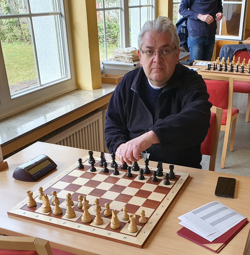Keine Minute später gab auch Ralf Ledbetter auf, da sein Angriff von Oswald nicht nur souverän abgefangen, sondern ebenfalls ein Läufer plötzlich von den weißen Zentrumsbauern eingesammelt wurde. Zwei frühe und wegweisende Punktgewinne durch die beiden früheren Vorsitzenden der Bergischen Schachfreunde.